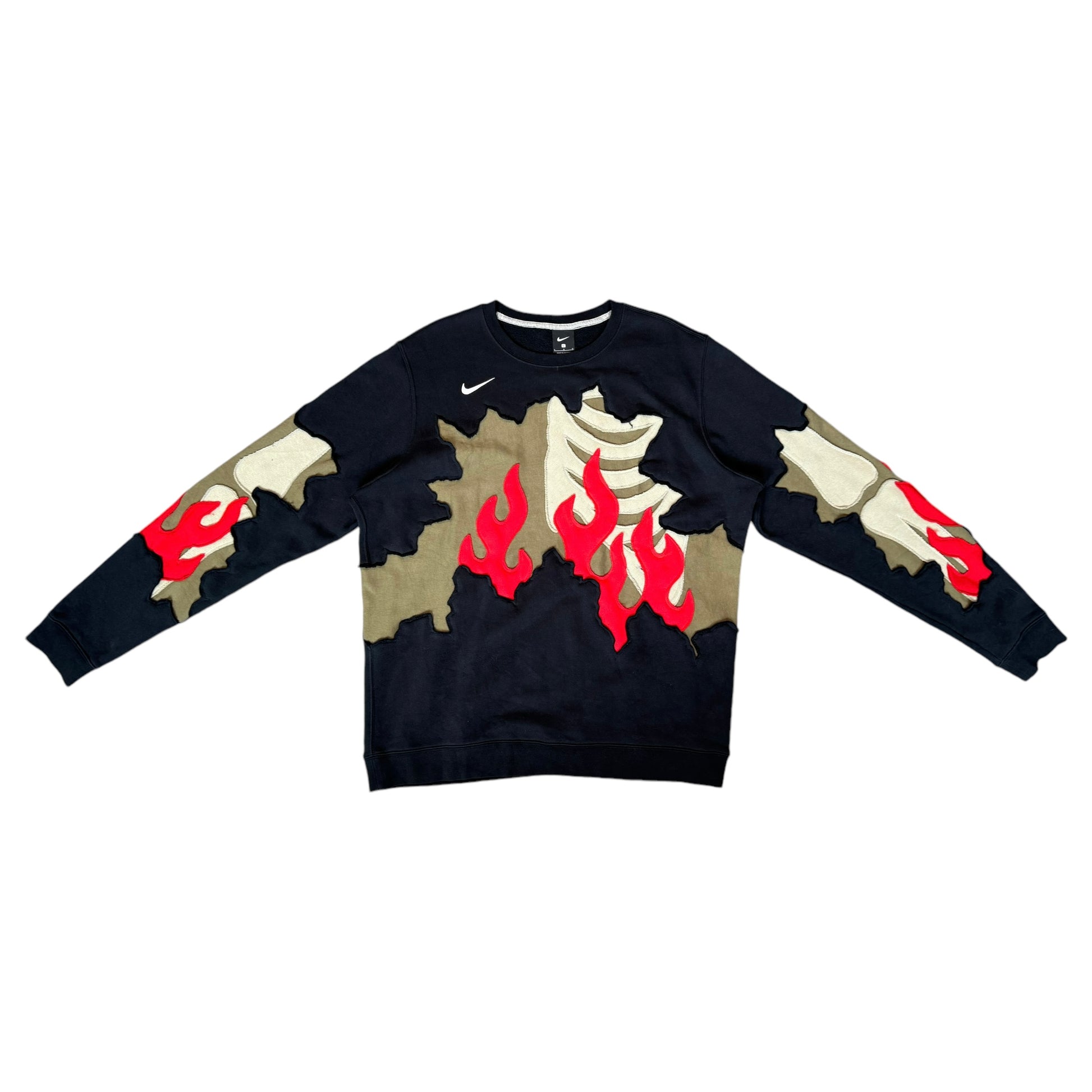 Turn up the heat with the Skeleton Heatwave Crewneck, a bold fusion of flames and bones that brings serious fire to your wardrobe. Featuring a striking ribcage design engulfed in vibrant red flames, this crewneck is perfect for those who want to make a statement. Made from eco-friendly, upcycled materials, the Skeleton Heatwave combines sustainable fashion with a fiery, streetwear edge. Whether you're out and about or staying in, this piece will keep your style burning bright.