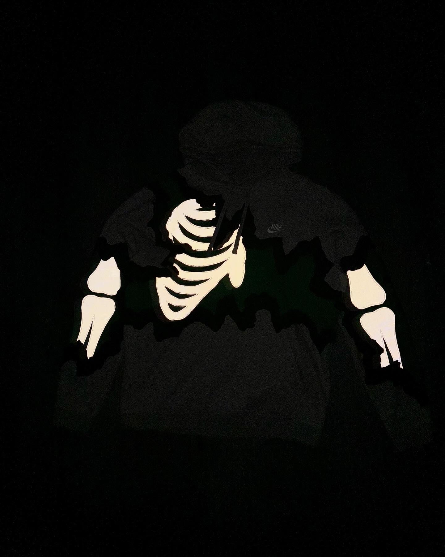 Channel the spirit of the Luminous Guardians and light your path with the Reflective Ribcage Hoodie—because true strength shines through in the darkest moments.
