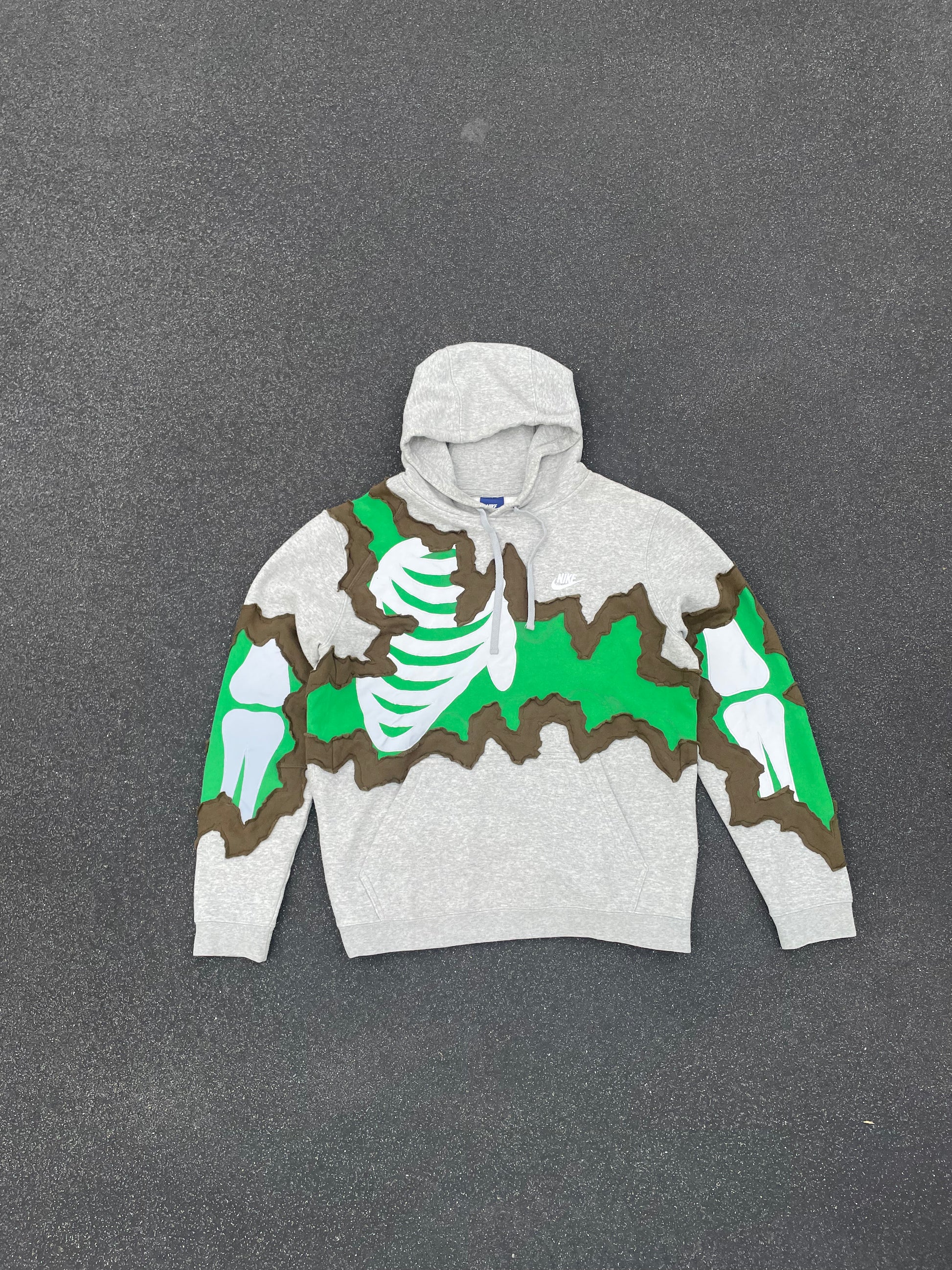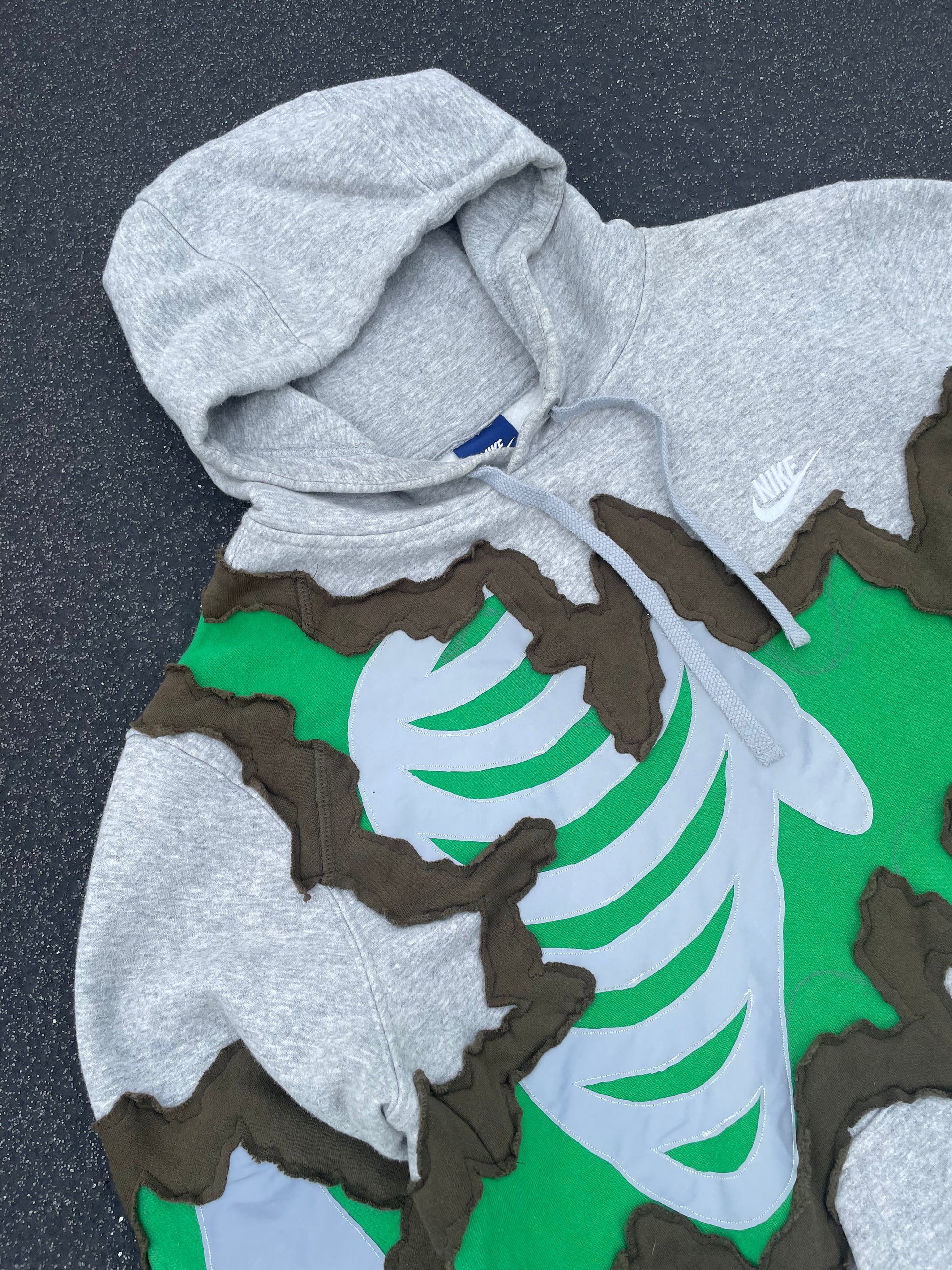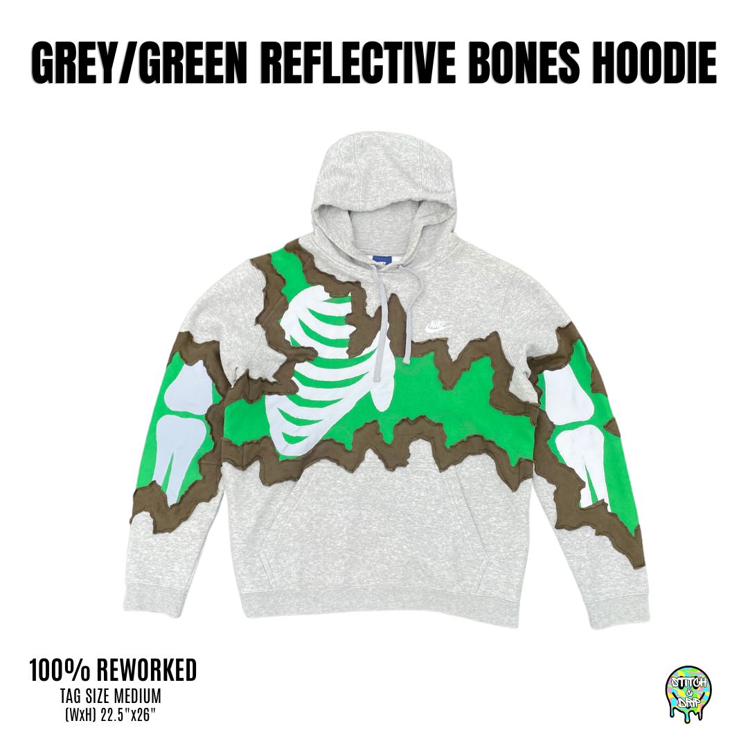 Inspired by the legend of the "Luminous Guardians"—ancient warriors who were said to glow with an inner light when they faced danger—the Reflective Ribcage Hoodie brings this mythical energy into the modern world. The reflective ribcage design, glowing against a backdrop of forest green and earthy tones, symbolizes protection and resilience, lighting up in the darkness just like the Guardians of old. Whether you're out at night or making a statement during the day, this hoodie reflects your inner strength and keeps you shining no matter the challenge.